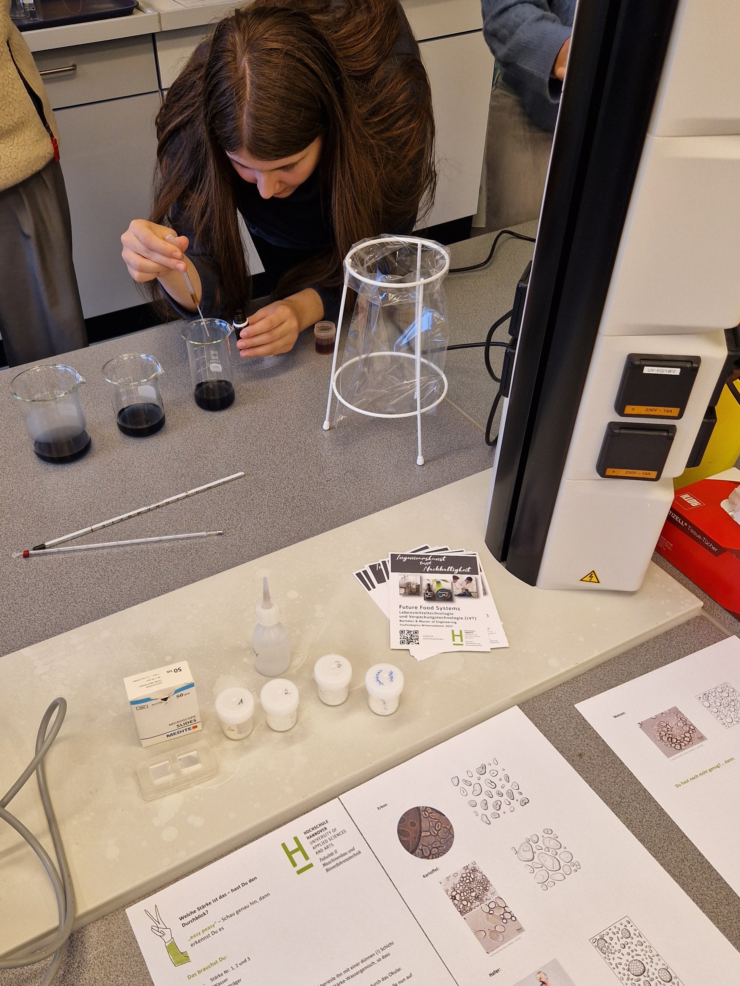 Neben den informativen Vorträgen über das Studienangebot bekamen die Teilnehmerinnen auch die Gelegenheit, in die Laborarbeit hineinzuschnuppern. Besonders eindrucksvoll war der Praxisteil, bei dem sie selbst am Mikroskop tätig werden und verschiedene Stärkeformen erforschen konnten.